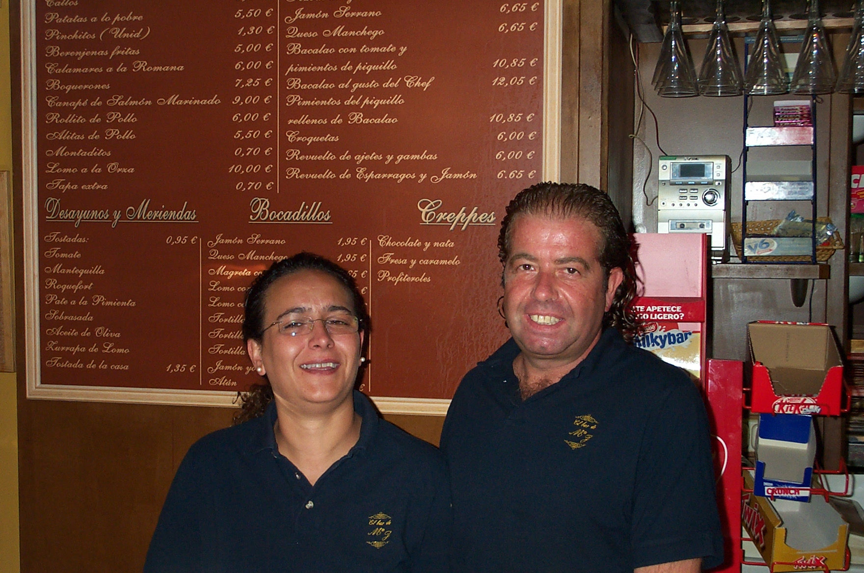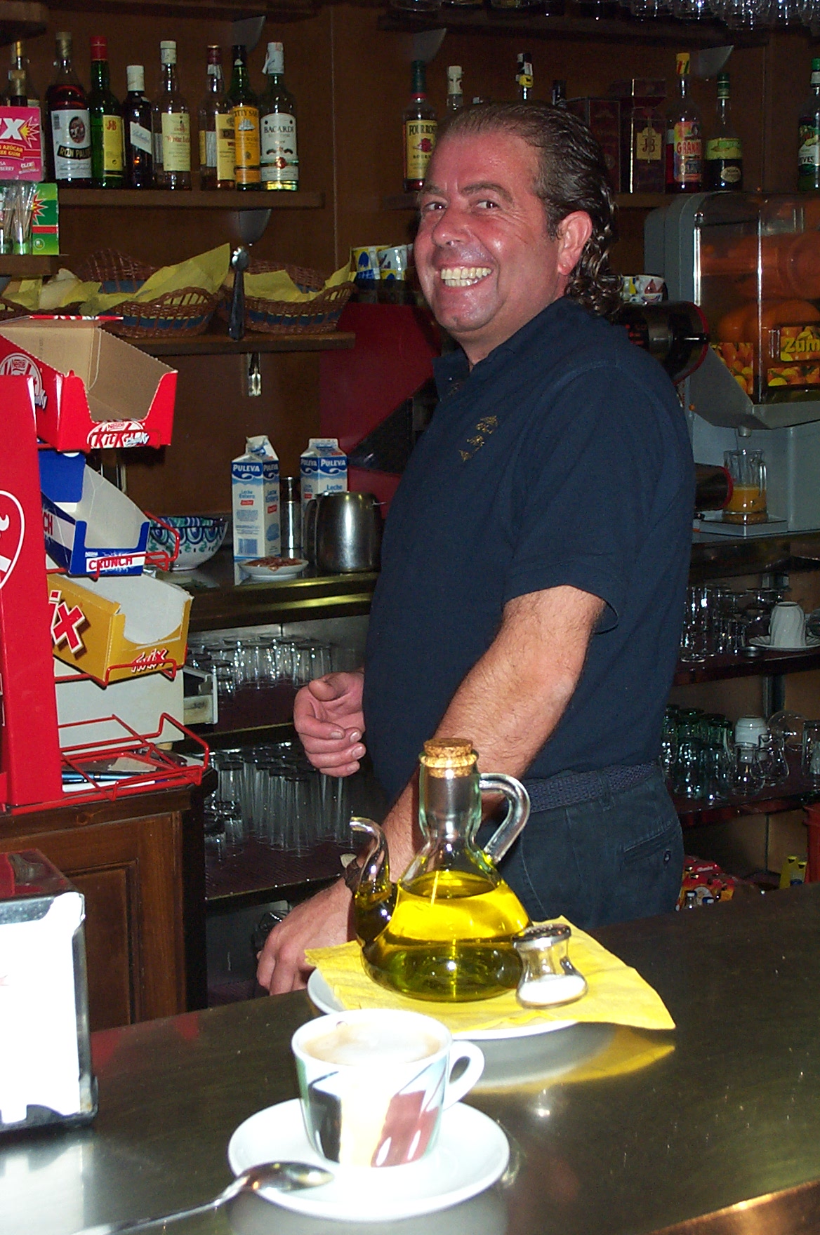 María Jesus and Jesus own our breakfast bar.  Jesus makes great tostadas and María Jesus makes the best café con leche in all of Spain.  Like us, they have 2 daughters, María Jesus & Alejandra, only 20 years younger than ours. Even though his name is Jesus, sometimes he can be a devil. We miss the daily dodging of vehicles on the narrow brick street around our house.  You also have to watch out for "squirters", loose bricks that squirt dirty water up your leg if you inadvertently step on them. Marga and her mom and brother, Gerardo, made our daily newspaper purchase something we always looked forward to.