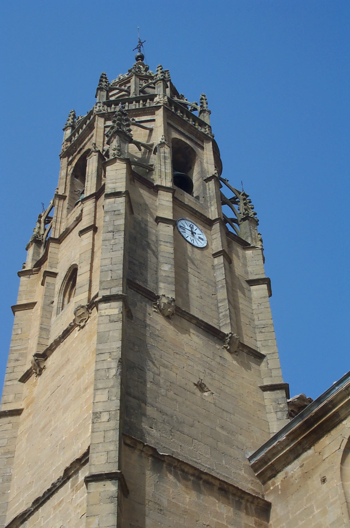 Belltower of the church in Sadaba. Baptismal Font in the Church.  The top is made of wood. When it is time for a baptism then just swing it open. This was an interesting site.  Multiple use site through out history.