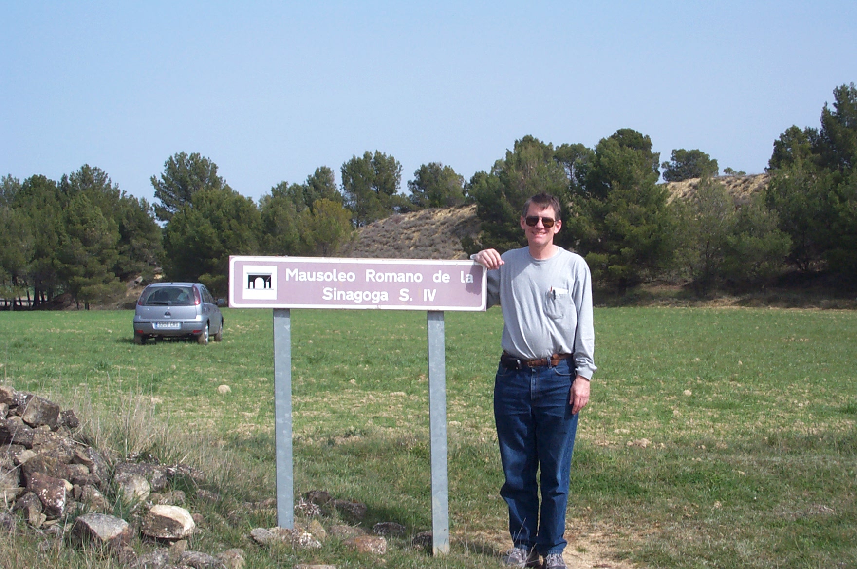 Ruins of the synagogue and Roman Mausoleum. Nancy in front of the Roman Mausoleum then used as a synagogo Tom and the ruins. Tom and a castle near Sabada.